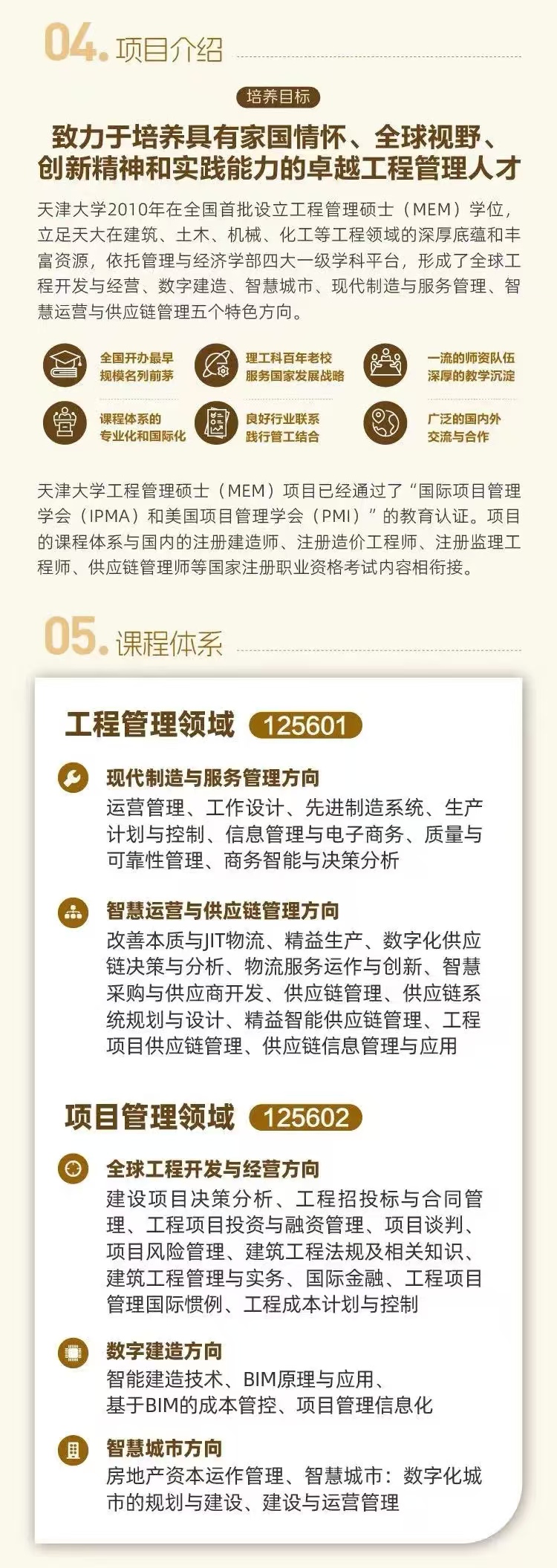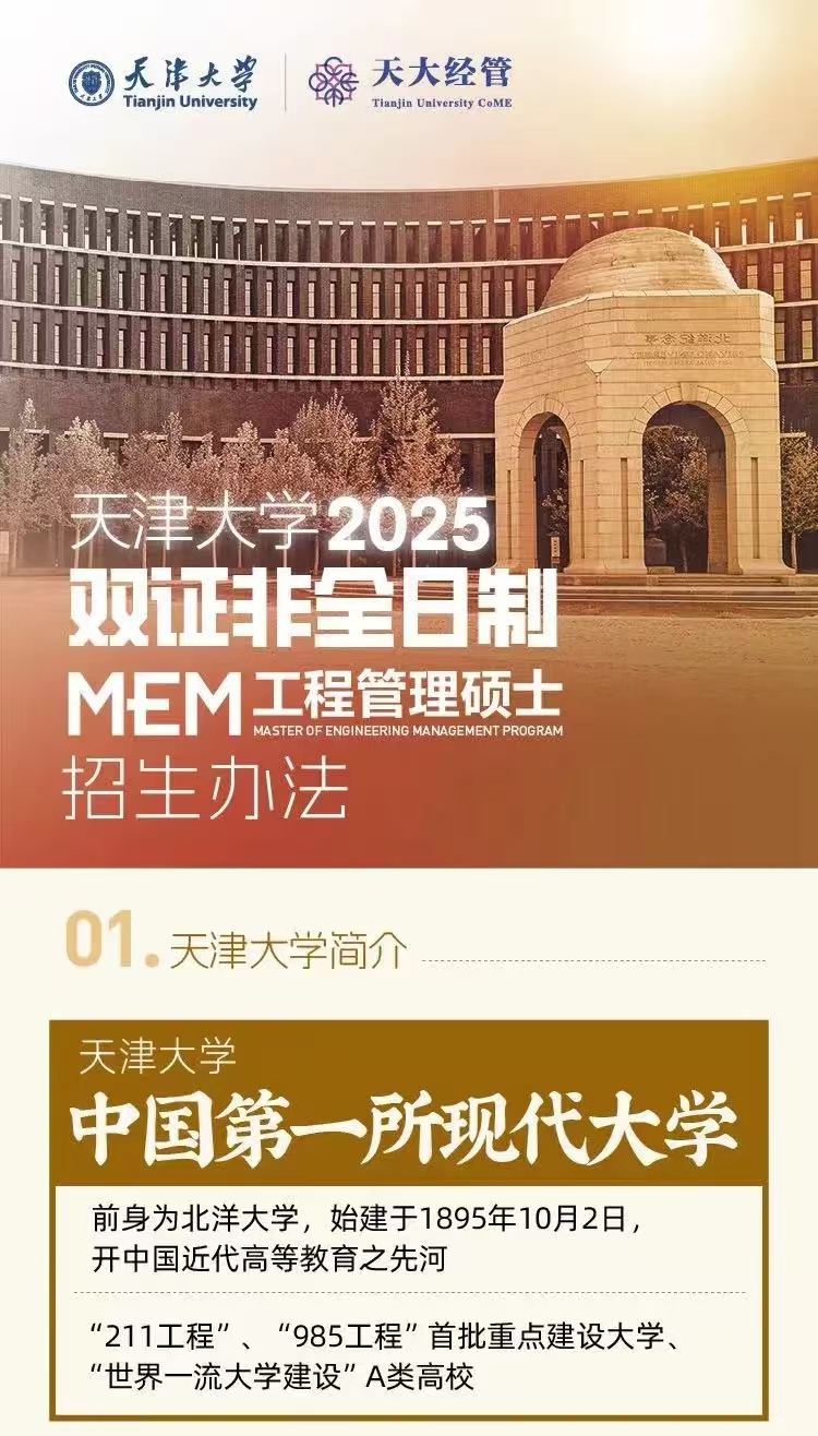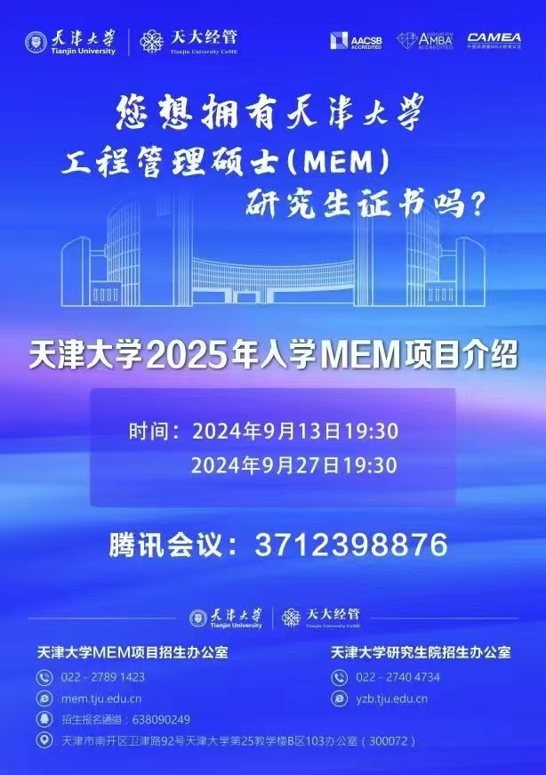 天津大学2025年入学工程管理硕士MEM项目说明会