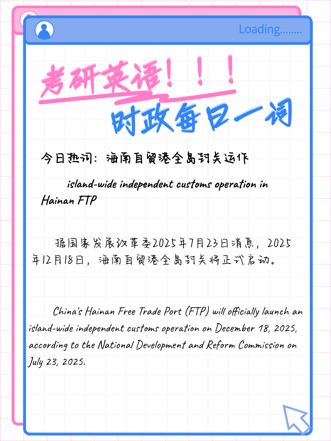 China's Hainan Free Trade Port (FTP) will officially launch an island-wide independent customs operation on December 18, 2025, according to the National Development and Reform Commission on July 23, 2025.