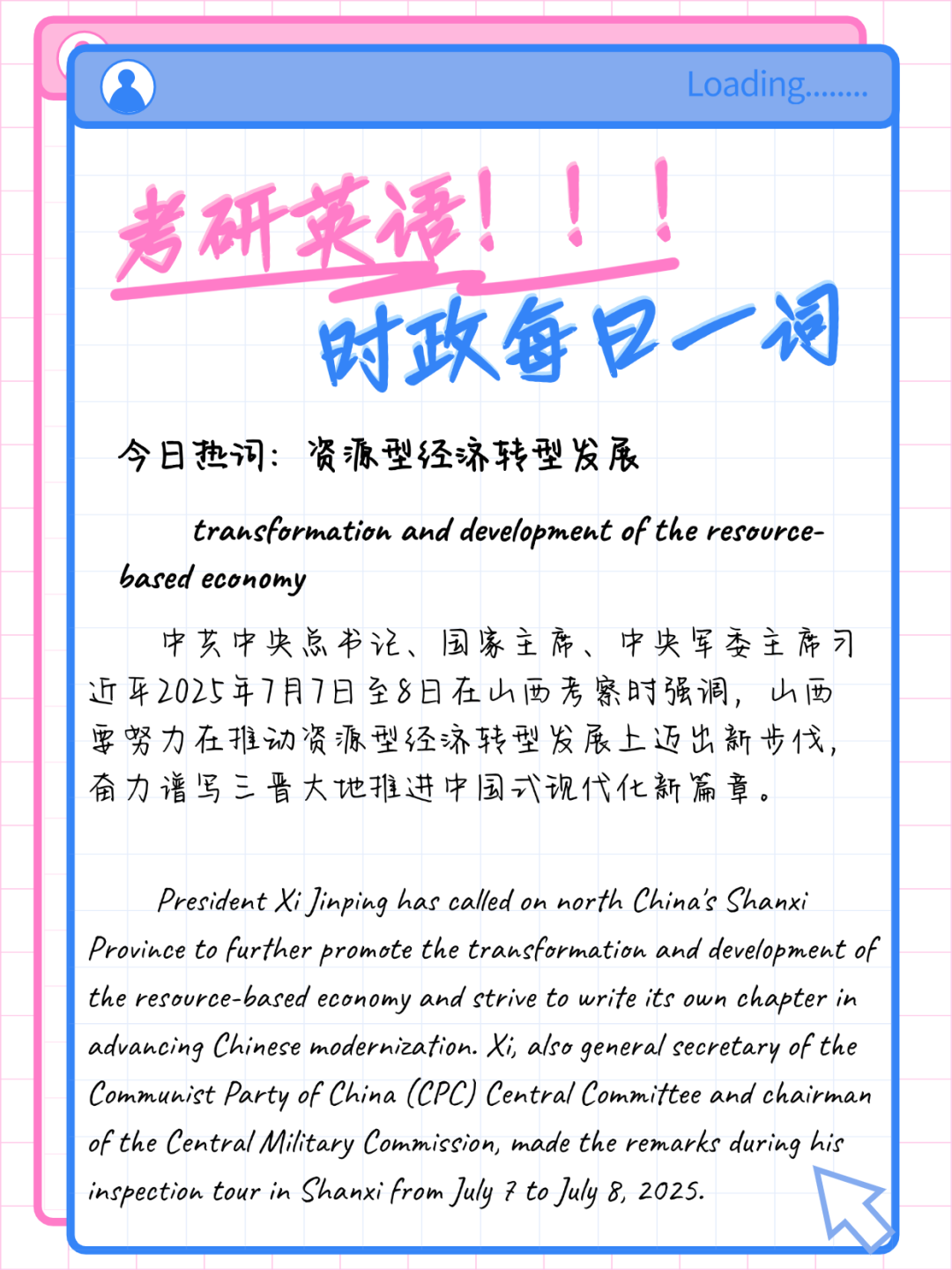 中共中央、、中央军委2025年7月7日至8日在山西考察时强调,山西要努力在推动资源型经济转型发展上迈出新步伐,奋力谱写三晋大地推进中国式现代化新篇章。