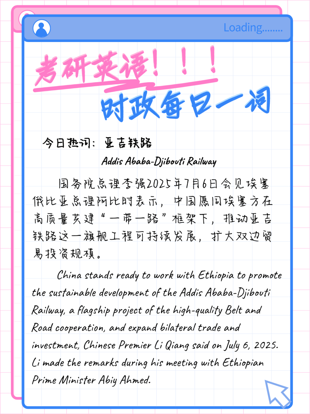 每日一词|亚吉铁路 Addis Ababa-Djibouti Railway