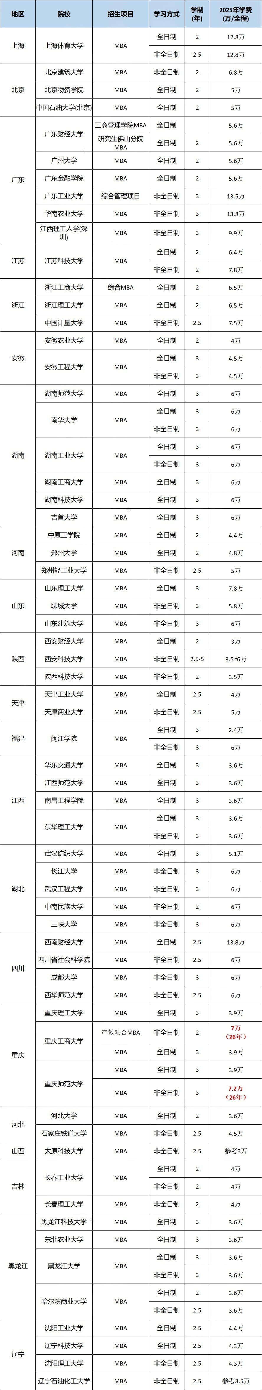 本期给大家盘点2025年全国各地全日制(【大摸底】全日制MBA周末上课的院校)以及非全日制统考MBA学费*低的院校!快来看看吧!