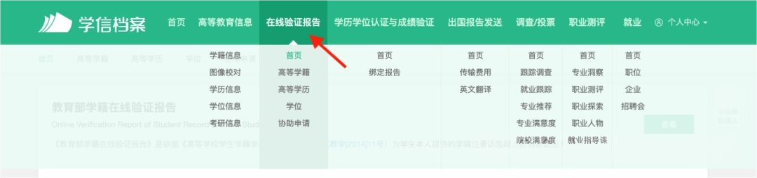 1.登录学信网主页,在“学籍学历学位”栏目下,点击选择“学历认证”