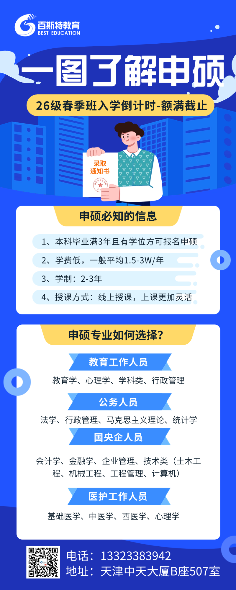 报名后,前2年内完成本专业培养方案所规定的课程学习,并通过考试取得合格*。课程学习形式为线上、线下相结合,不脱产以业余或节假日时间为主。