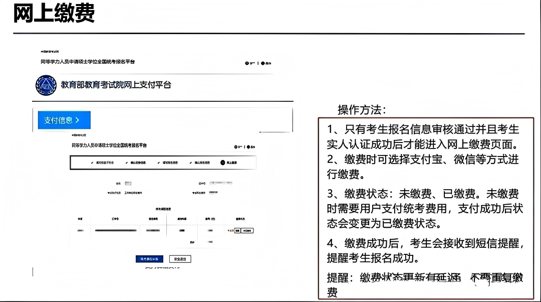 缴费成功,才算网报成功,才能统考!