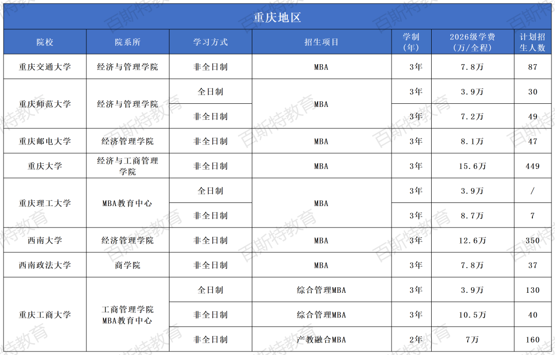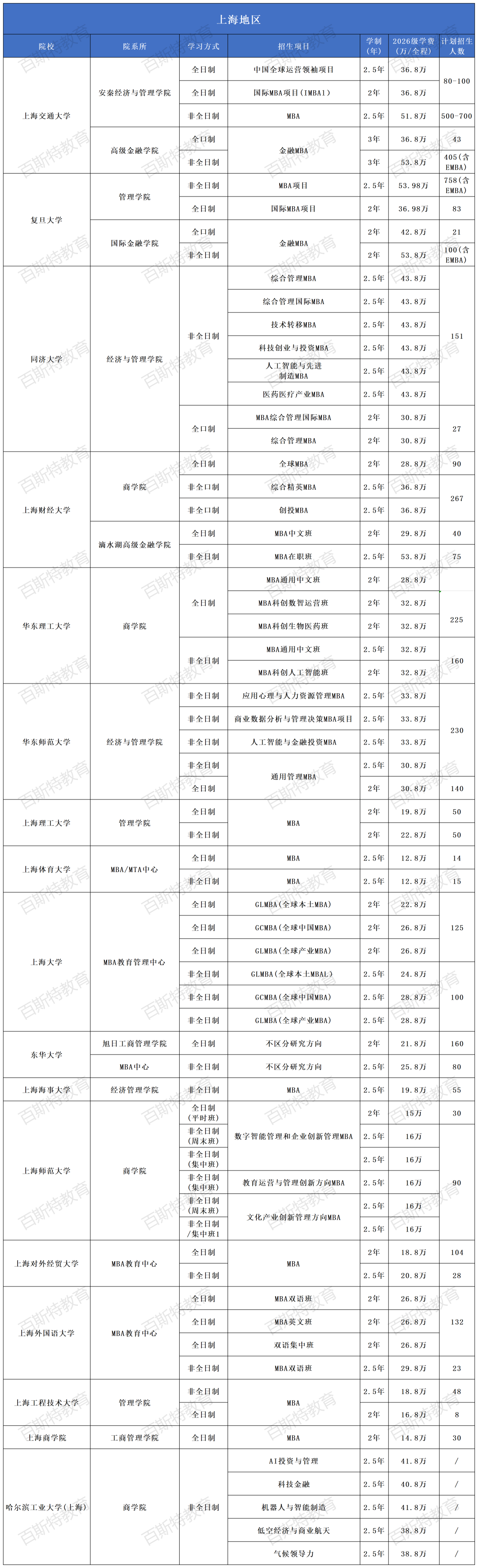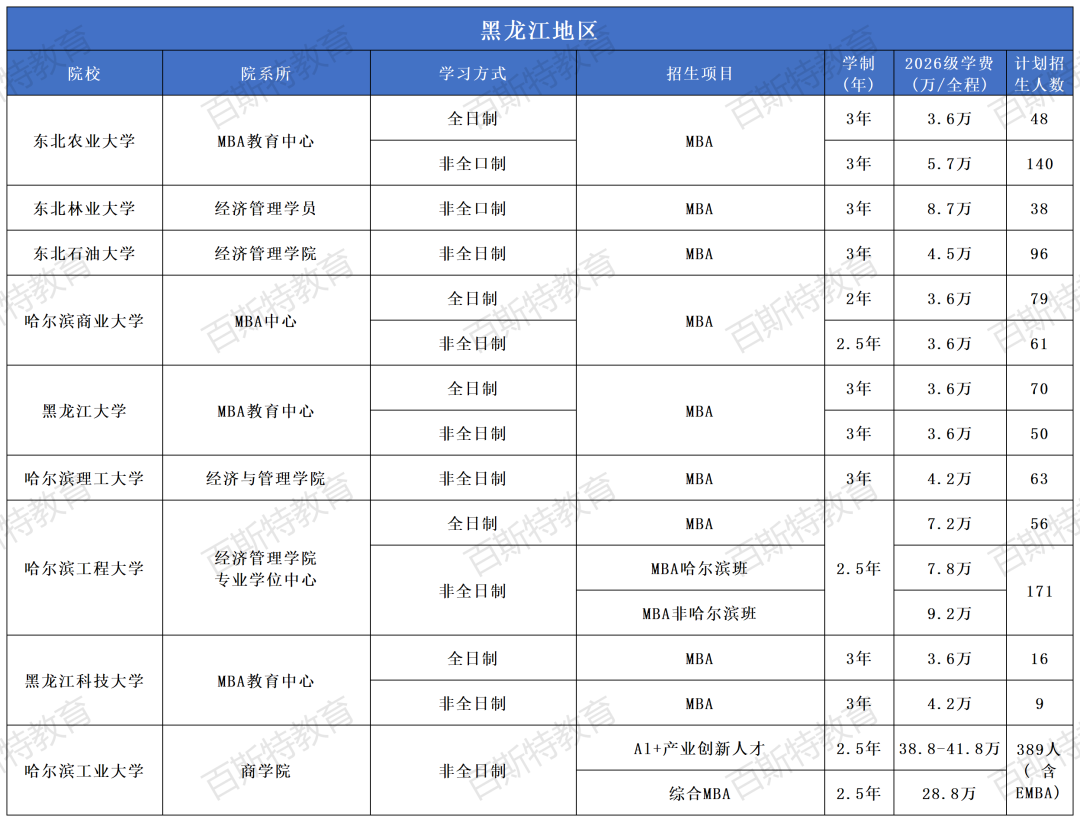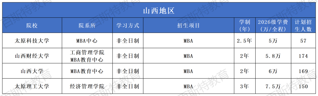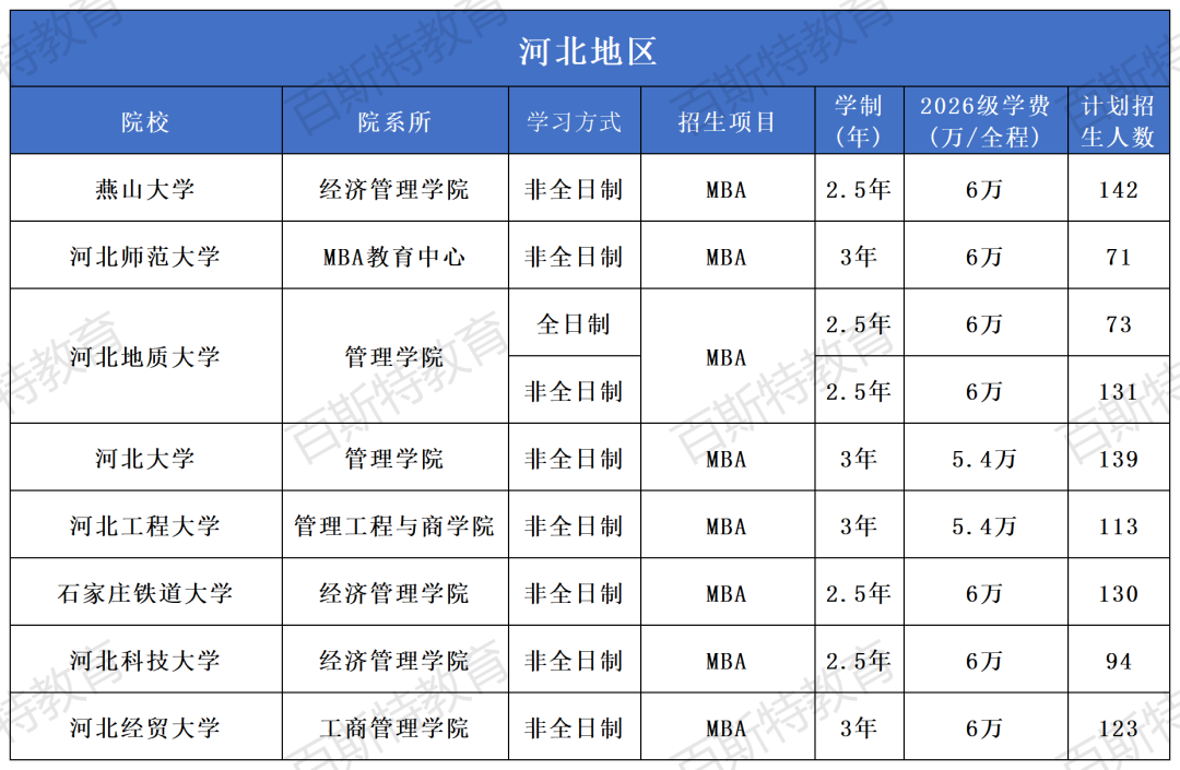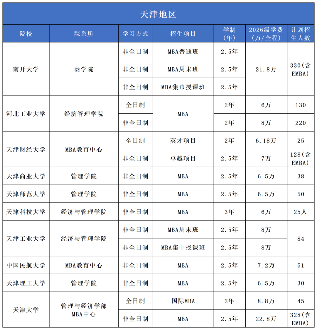 2026年全国高校MBA项目招生信息汇总