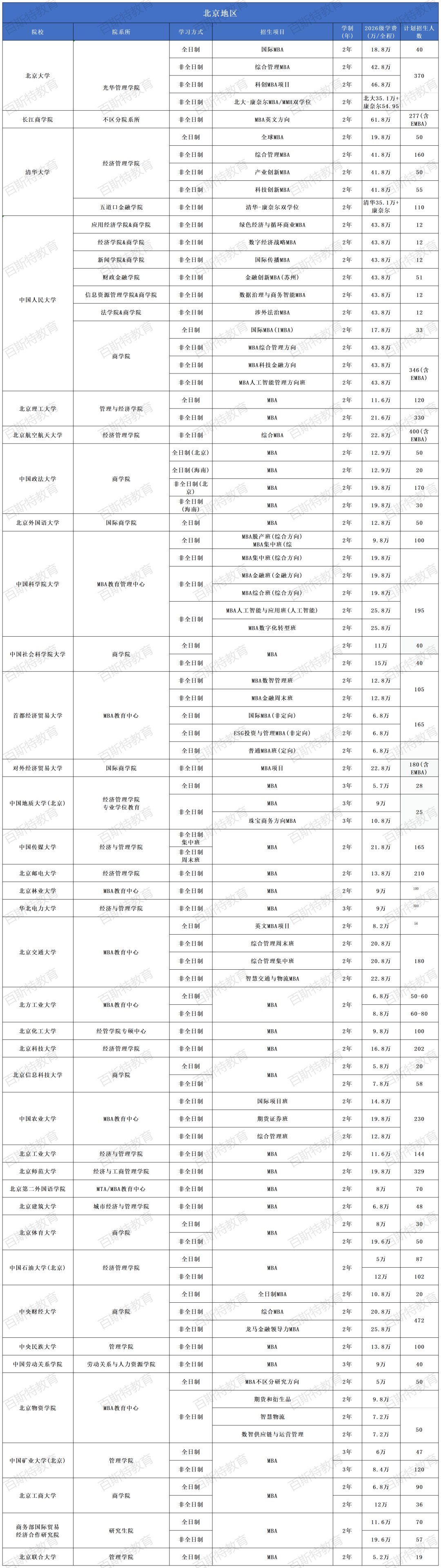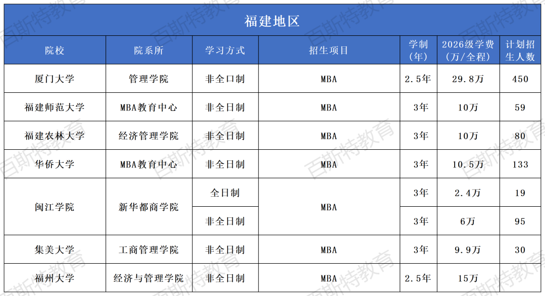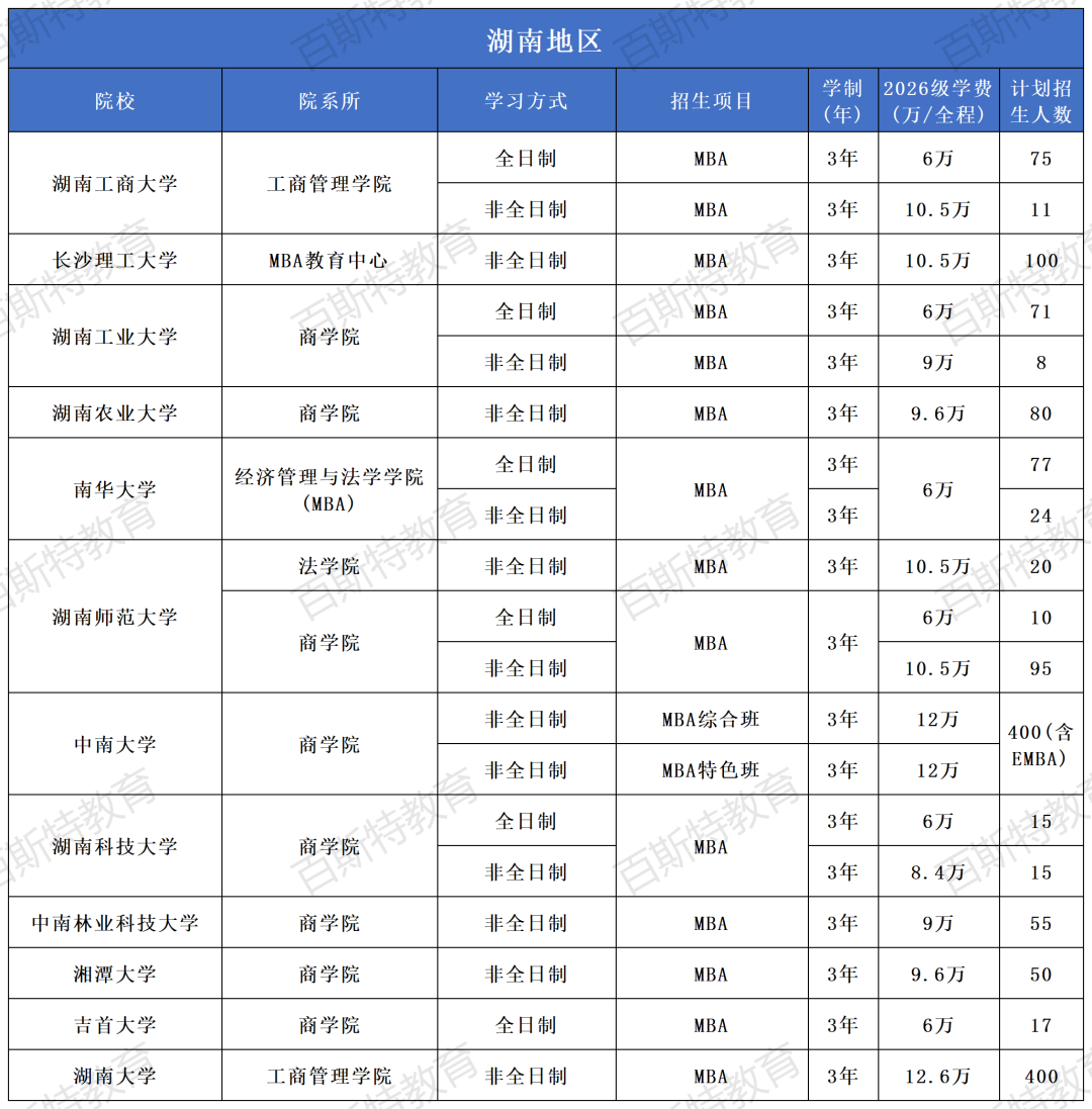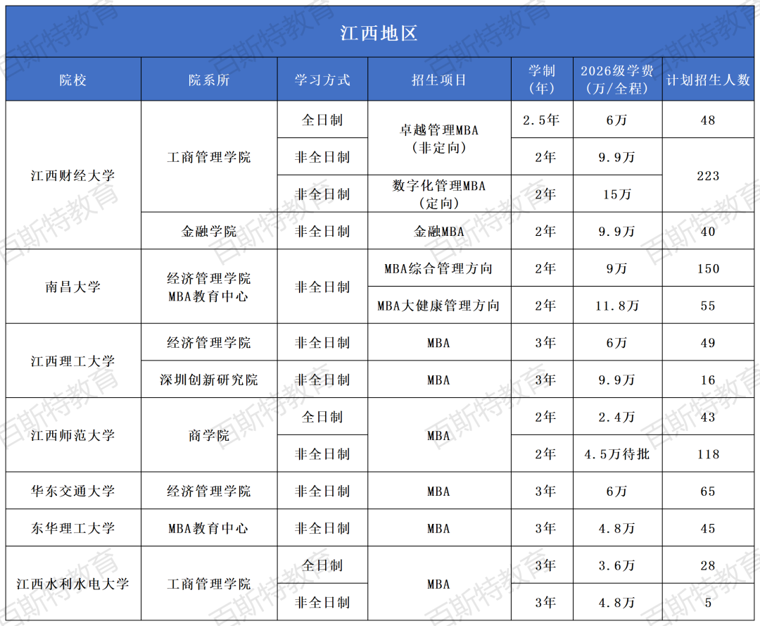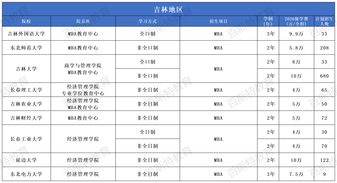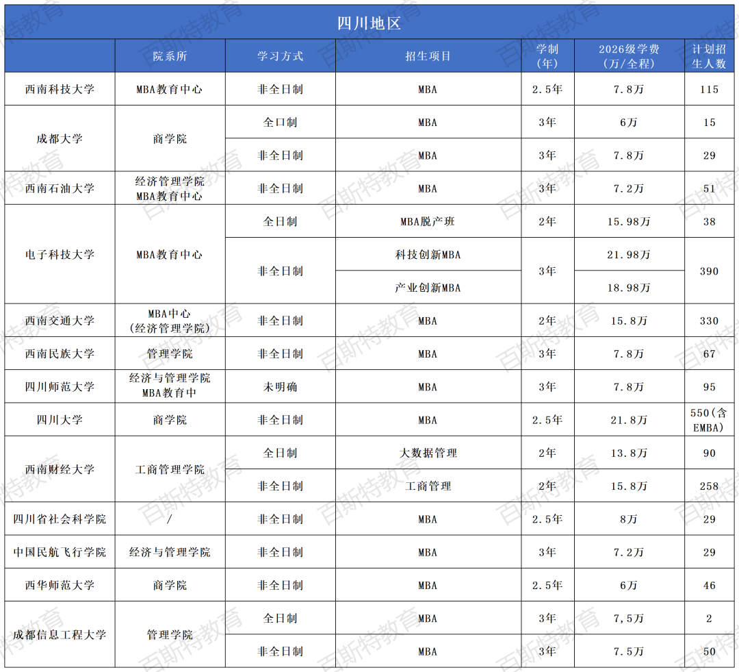 2026年全国高校MBA项目招生信息汇总