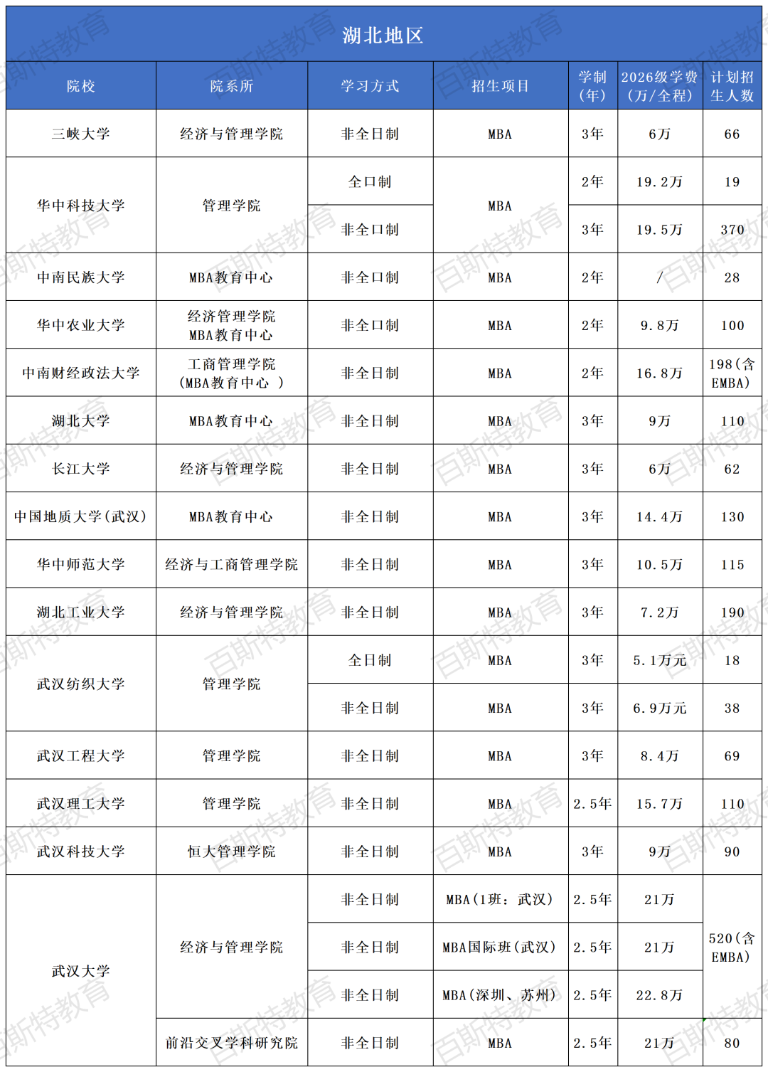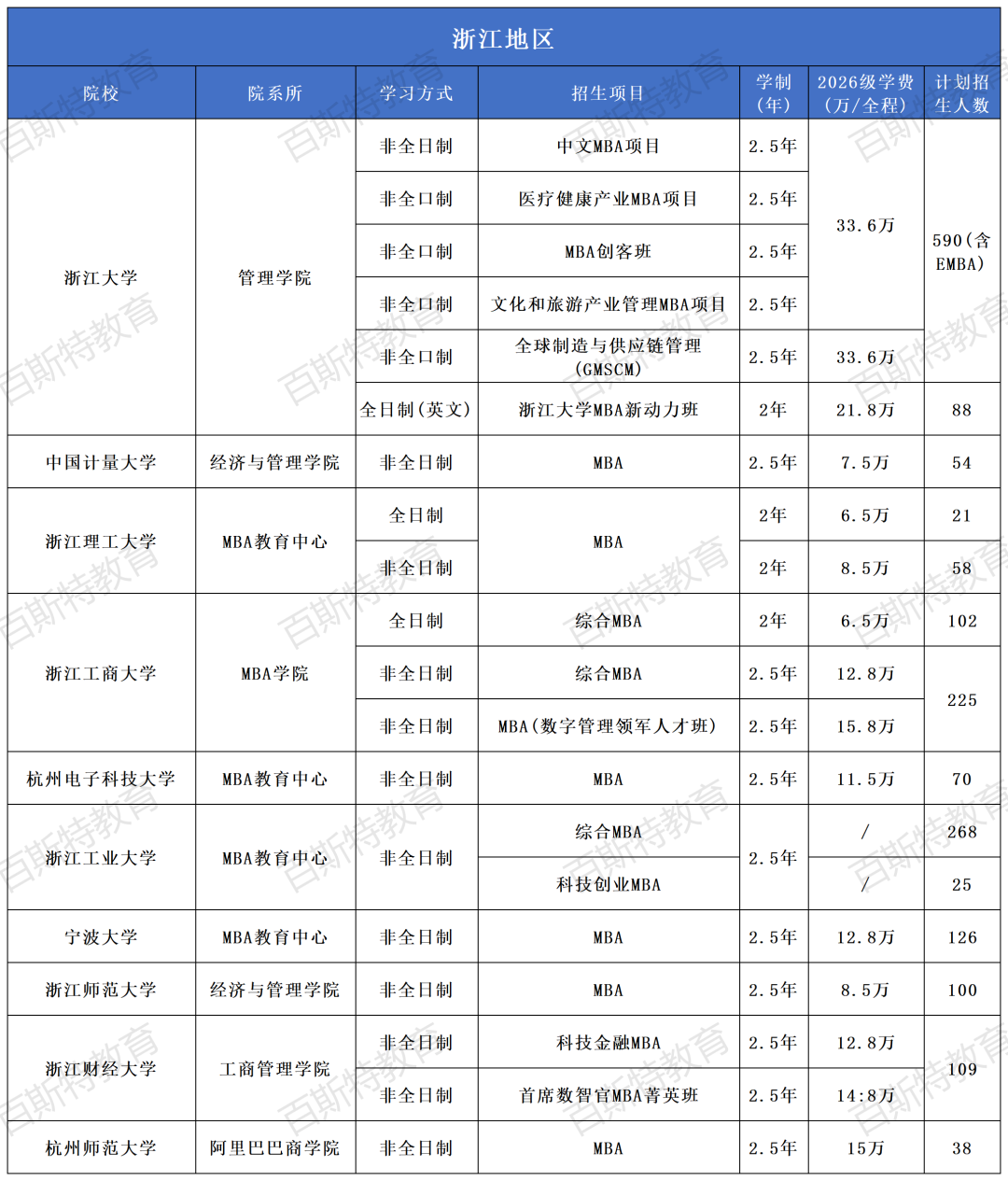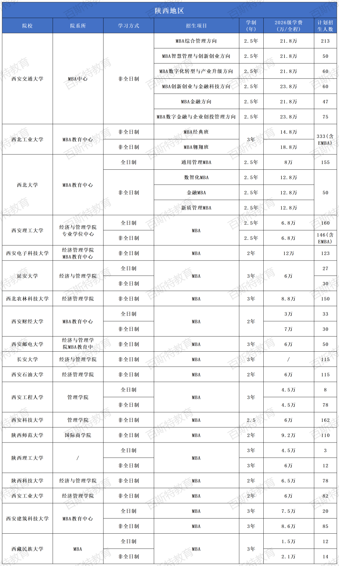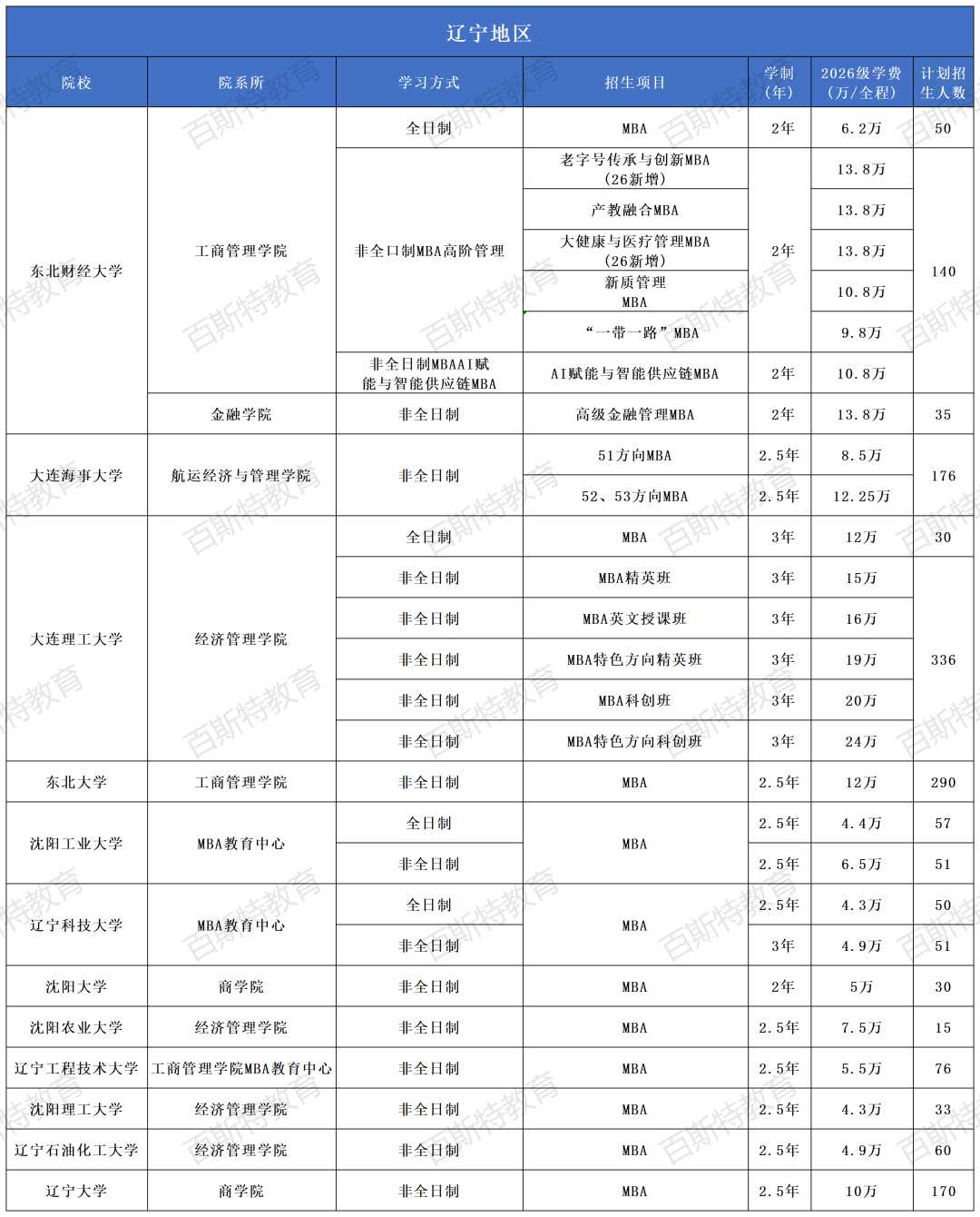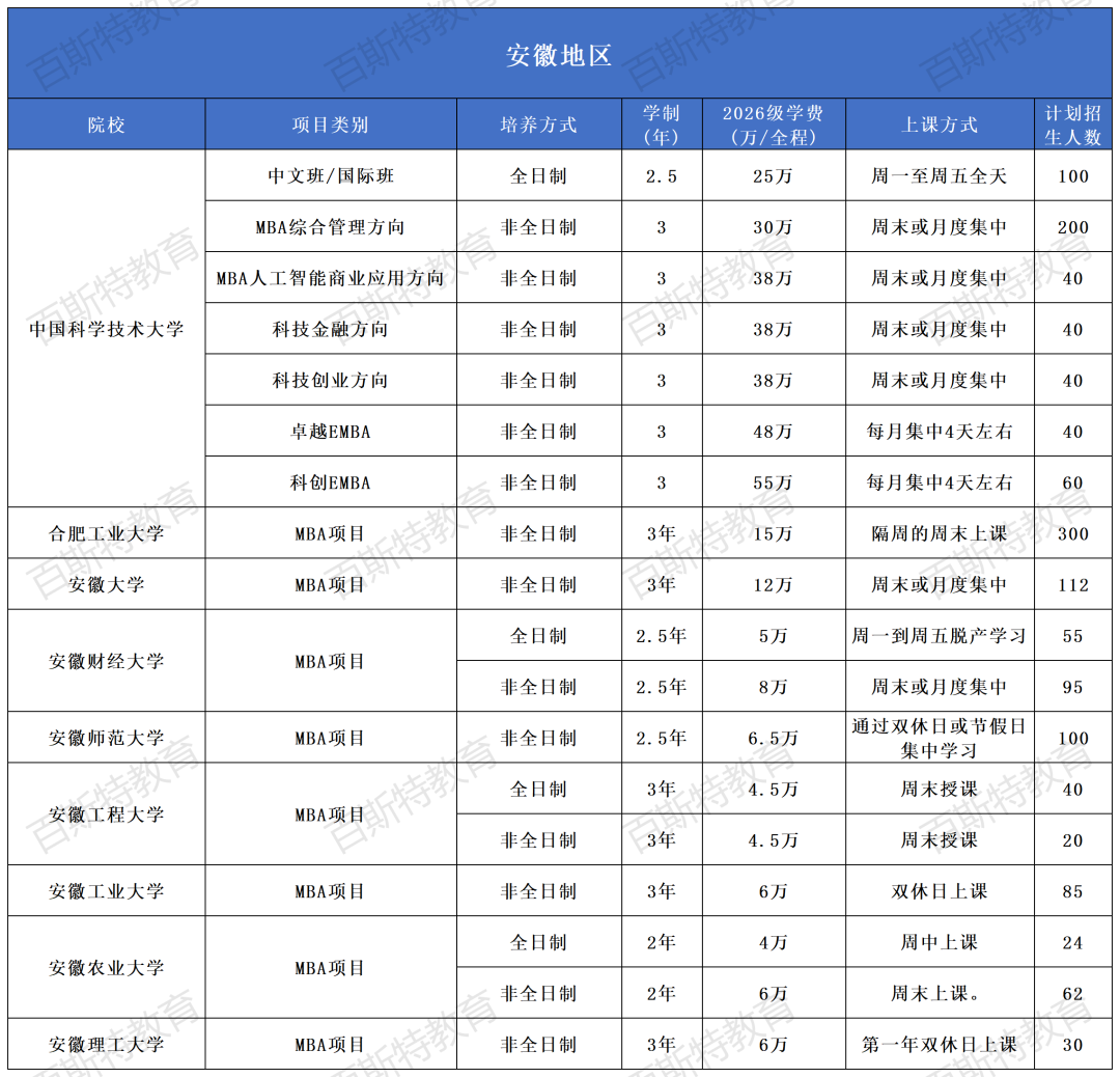 2026年全国高校MBA项目招生信息汇总