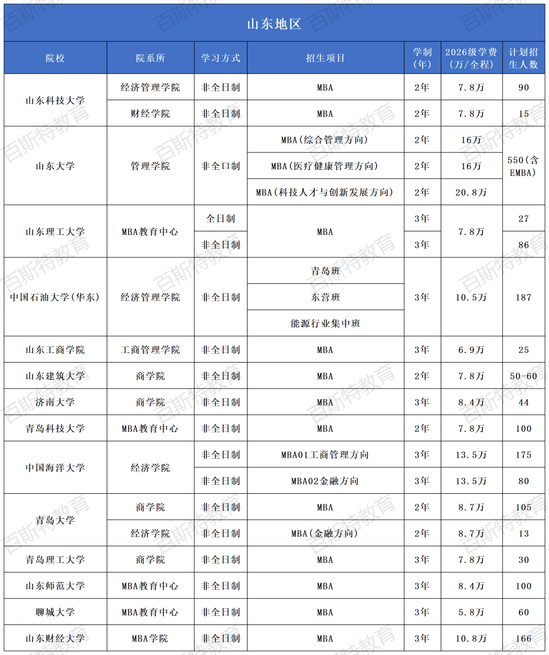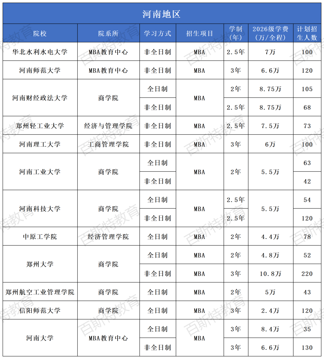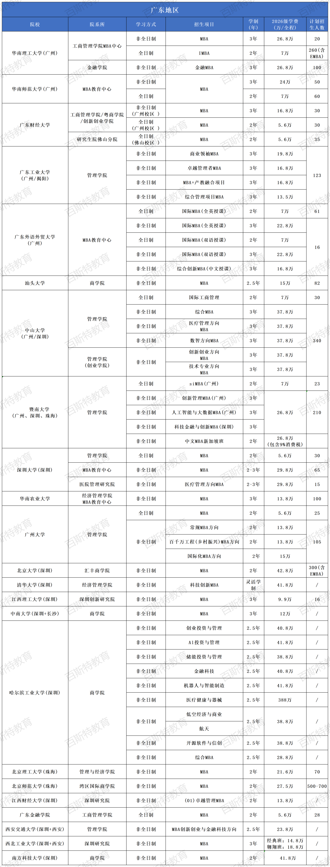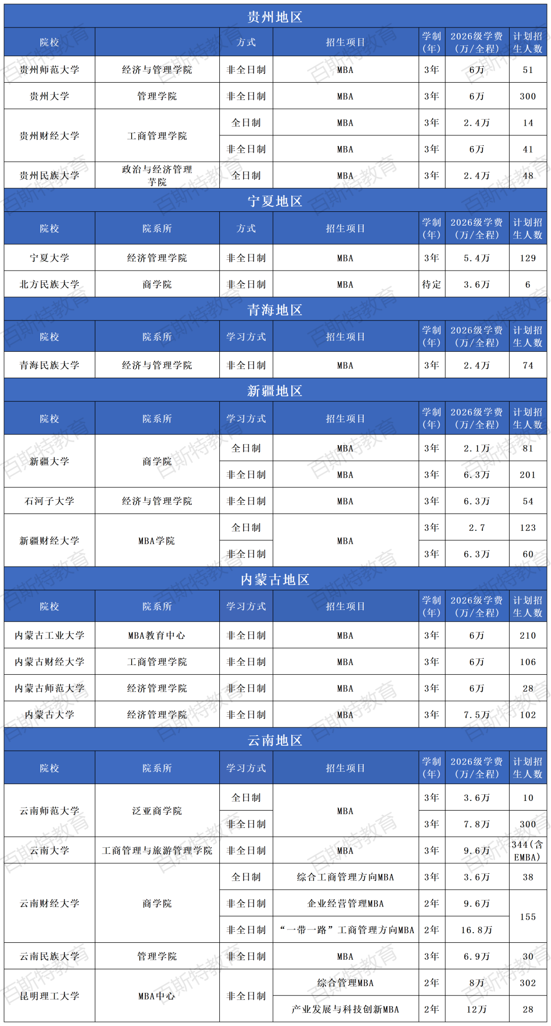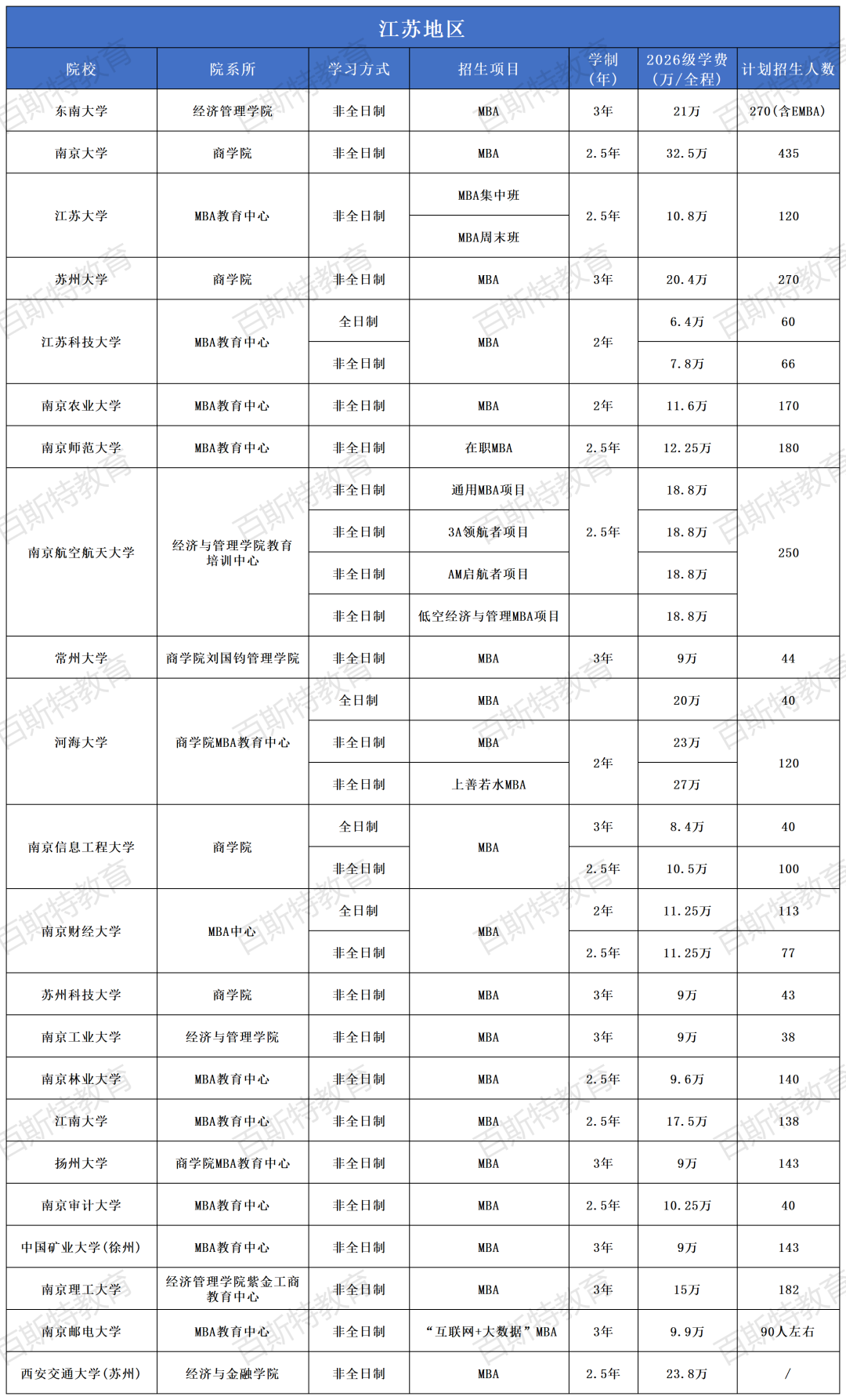 2026年全国高校MBA项目招生信息汇总